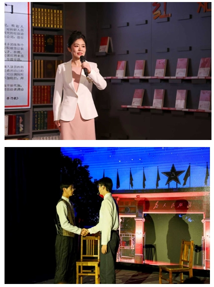 旅游管理系黨支部副書記王娟以《思想浸潤心靈 傳文脈繼往開來——習近平文化思想在浙江的溯源與實踐》為題,分享了《習近平在浙江》的讀書心得,情景劇《遺址邊的吶喊》,將思想性、藝術性及感染力高度結合,讓觀眾在情感共鳴中感受習近平文化思想的偉力。