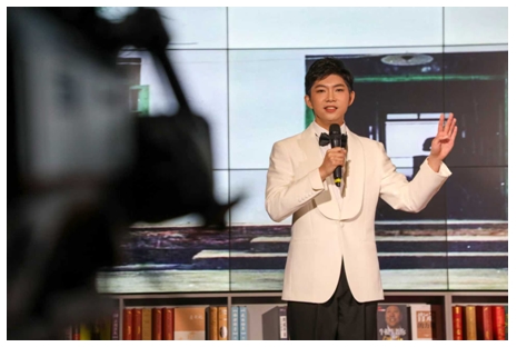 來自山東新華書店集團有限公司棗莊分公司的閱讀推薦人耿月君以《書香致遠 思想領航——在習近平總書記著作中感悟閱讀力量》為題,循著《習近平講故事》《習近平的七年知青歲月》等著作的脈絡,探尋總書記的讀書足跡,汲取奮進前行的力量。