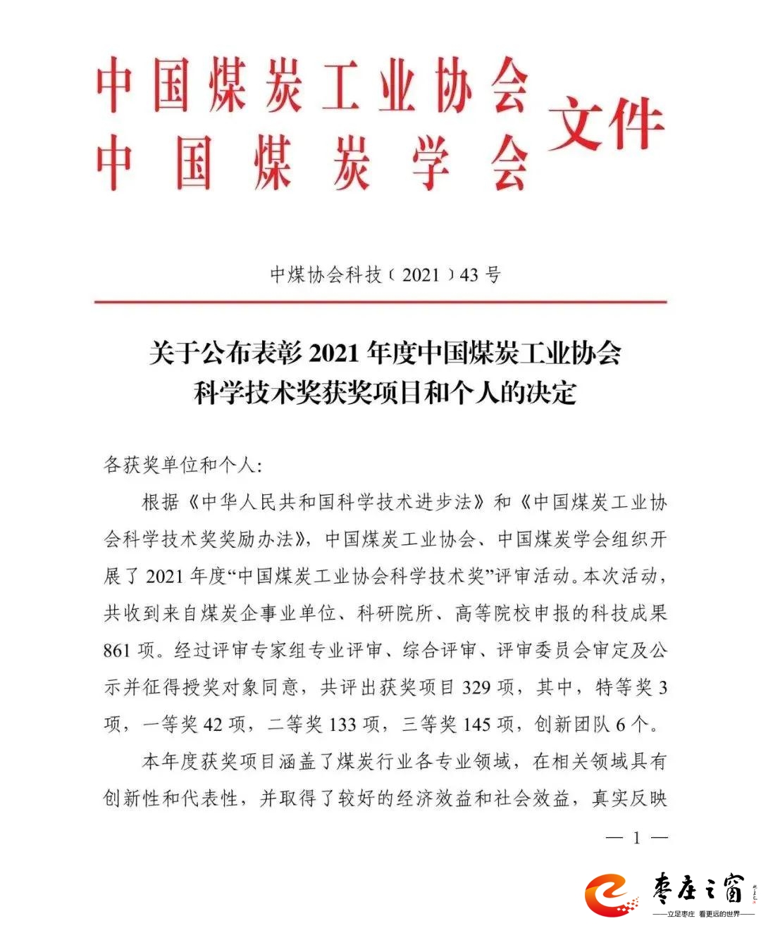 喜訊!田陳煤礦兩項(xiàng)科技成果榮獲2021年度中國煤炭工業(yè)協(xié)會科學(xué)技術(shù)獎(jiǎng)